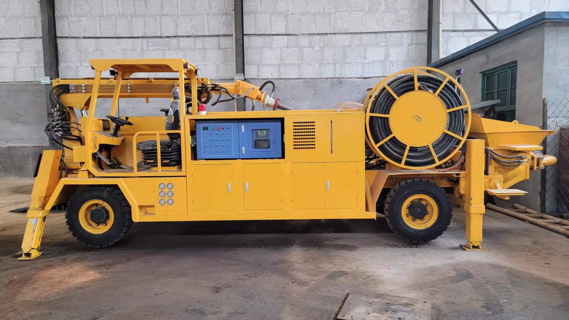 3) 速凝劑添加系統(tǒng)采用軟管泵,流量大、壽命長(zhǎng)、可靠性好??筛鶕?jù)需要調(diào)節(jié)比例,外加劑的摻量和混凝土泵送輸量均可通過(guò)工控屏或遙控器實(shí)時(shí)監(jiān)控和調(diào)節(jié)。
