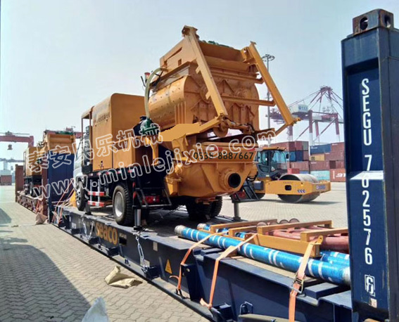 車(chē)載攪拌輸送**體泵出口 集裝箱裝起